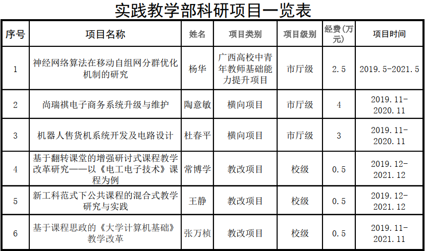实践教学部2019年科研教改项目一览表