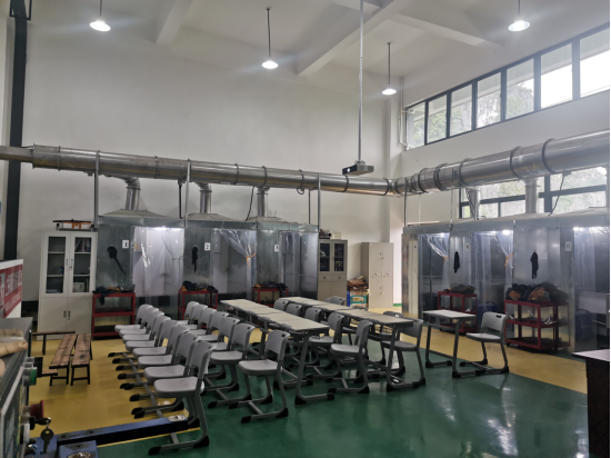 焊接实验室,12个焊接工位,16台焊机,主要提供焊接实习。一次可以容纳40实习。