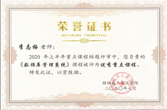 建设完善了《数据库管理系统(A)》和《大学计算机基础》两门重点课程。《数据库管理系统(A)》评为校级优秀重点课程和应用型示范课程。
